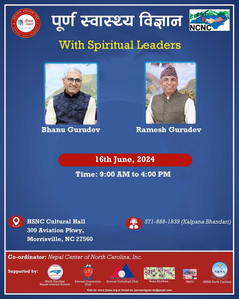 Join us for an enriching journey towards holistic well-being in our program, "Complete Health." Discover the profound benefits of nurturing your physical, mental, and spiritual dimensions. Under the guidance of revered Gurudev duo LP Bhanu Sharma and Ramesh Nepal, delve into the transformative practices of yoga, pranayama, and meditation, which are proven to optimize your health and vitality.